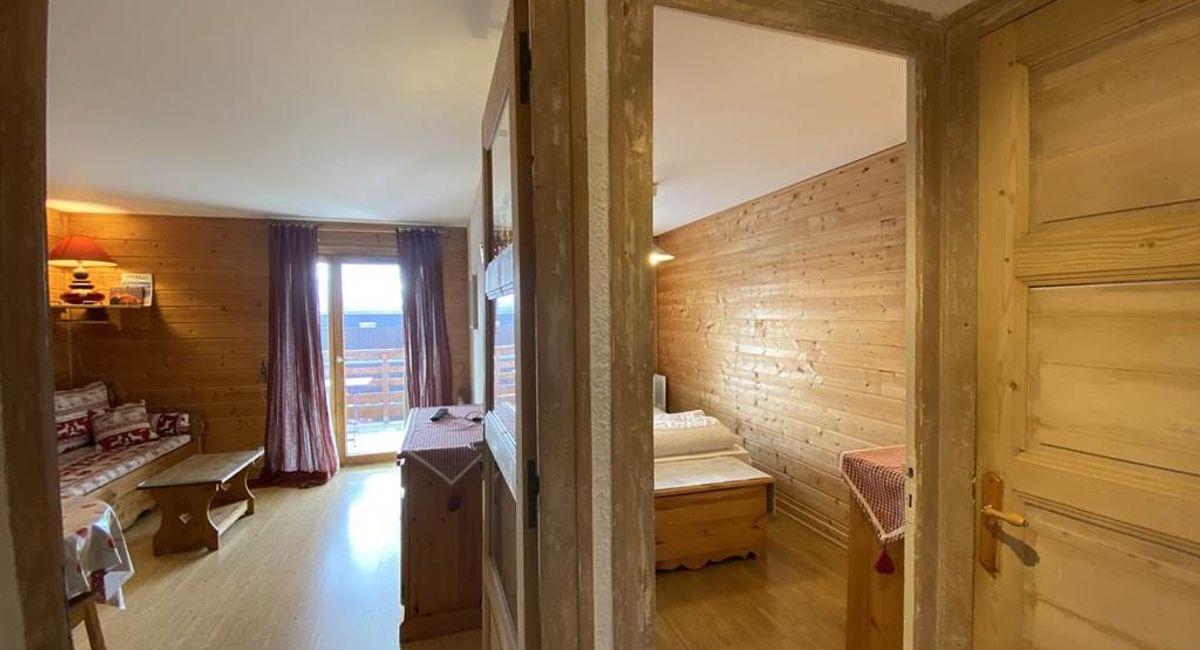 Appartement de 37m2 proche de tout, ski, commerces, centre, animations pour 4 personnes en 1 chambre double et 1 grand coin nuit avec porte et lits superposés.