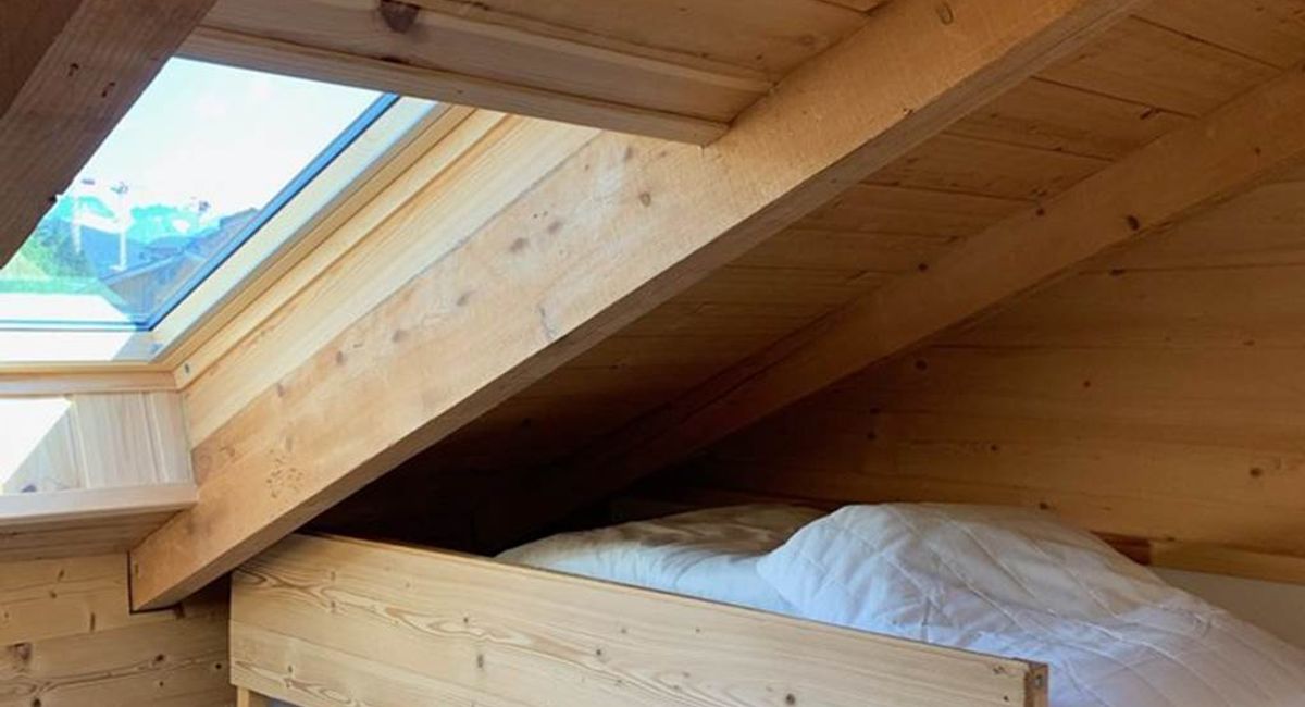 Chambre: 2 lits superposés (2X90 cm) et un lit mezzanine (90 cm)