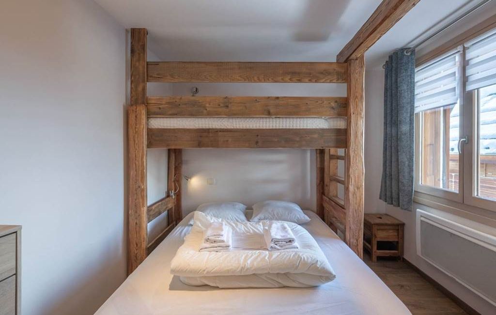 Dans une résidence originale de la station, L'ALASKA, les accés sont assez étroits mais l'appartement est optimisé et très bien agencé. Il fait 42m2 et offre 2 vraies chambres avec rangements. Chacune a sa salle d'eau et son WC,