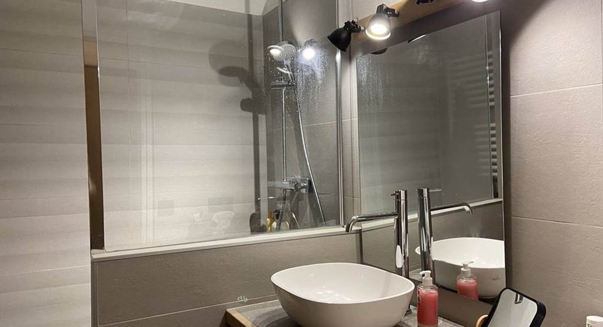 1 salle d'eau, 1 salle de bain et une très belle pièce de vie plein Sud avec balcon sur toute la longueur. Nous avons eu un coup de coeur pour ce bien qui vous accueillera et participera à vos meilleurs souvenirs montagne