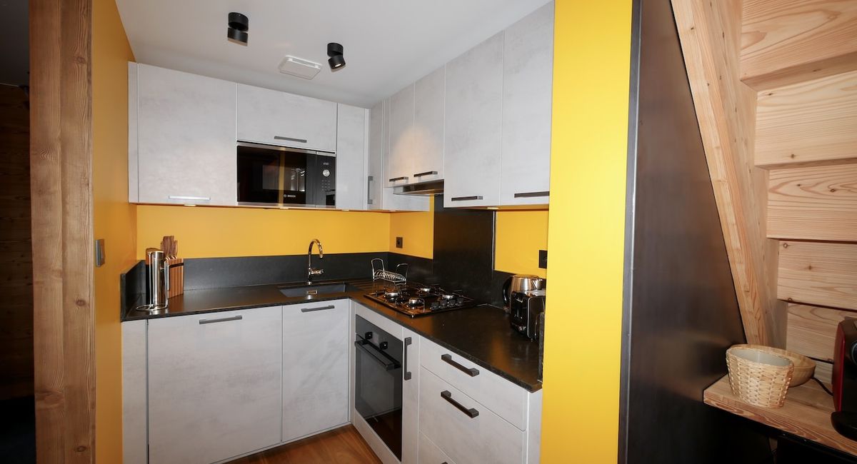 Appartement Milou, récemment rénové avec goût dans un style montagnard moderne, offre 82m2 habitables.