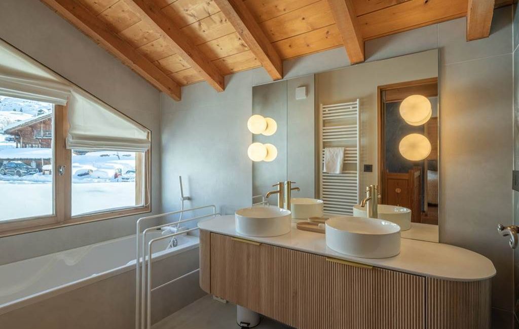 1 salle de bain (+ douche), 2 salles d'eau et 3 WC séparés, ce chalet 4 étoiles a été rénové en 2024 avec beaucoup de goût.