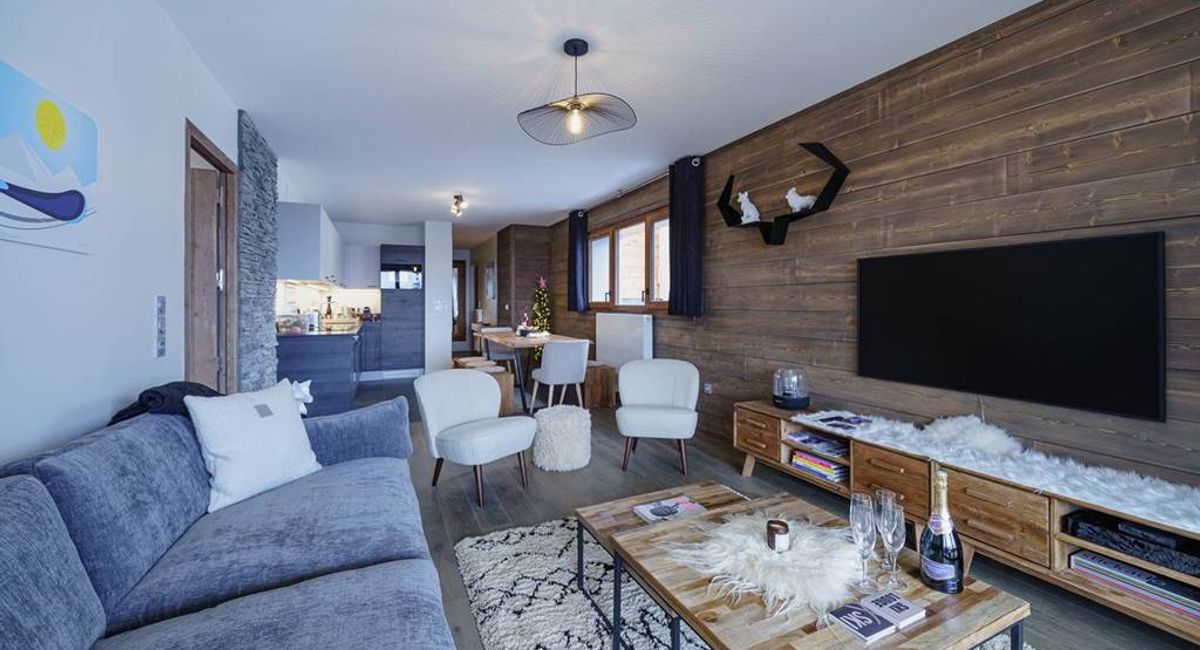 Alpe d'Huez Houses vous propose cet appartement de 90m2 aménagé avec goût pour un séjour ski chaleureux et cosy pour 8 personnes en 3 chambres doubles (dont 2 twins modulables) et 1 coin cabine avec 2 lits superposés sur mesure.