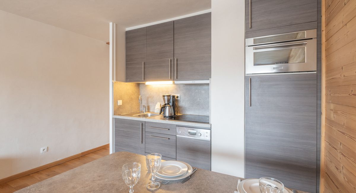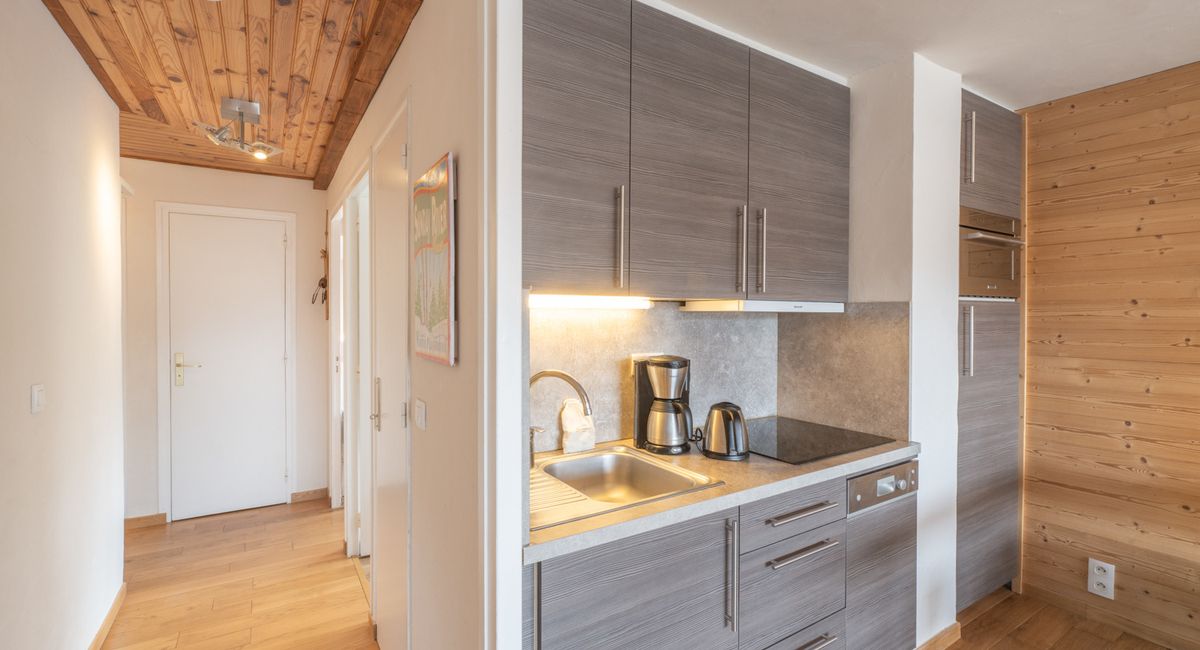 Cet appartement fonctionnel en plein coeur de la station offre un accès direct au palais des sports et des congrès ainsi qu'aux commerces de l'Avenue des Jeux. Lumineux et bien agencé, il dispose d'une kitchenette moderne et d'un espace de vie optimisé pour le confort après une journée de ski.
