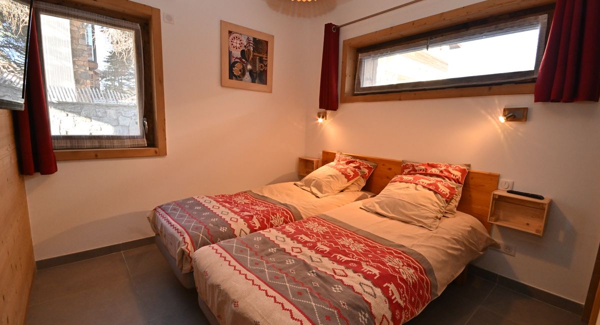 * 1 chambre avec lits jumeaux 2 personnes, salle de bain : lavabo, douche, toilettes. Ecran-plat.