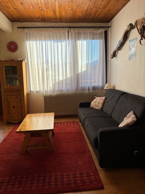Appartement 4 couchages coin montagne et lit convertible, grand salon/SAM/cuisine, salle de bain avec baignoire, WC séparé. Grande terrasse avec point de vue panoramique. Local à ski au rez de chaussé