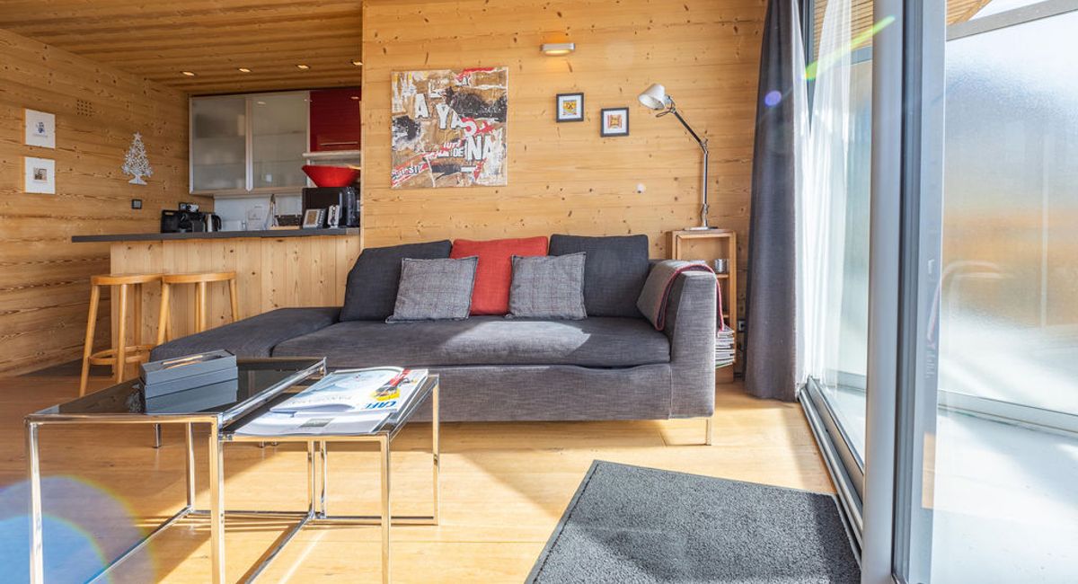 Appartement situé en plein cœur de la station avec un retour skis aux pieds. Au dernier étage, vous profiterez d'une vue incroyable sur l'Alpe d'Huez.