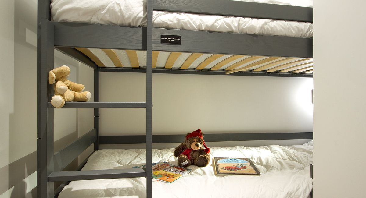 Une cabine avec lits superposés.