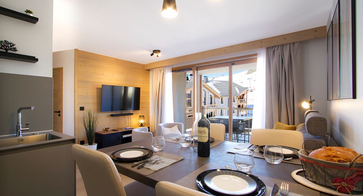 Appartement trés agréable dans une résidence toute neuve vous offrant un départ et un retour ski aux pieds, mais aussi un accés à une piscine intérieure, salle de sports, sauna, hammam, douches sensorielles.