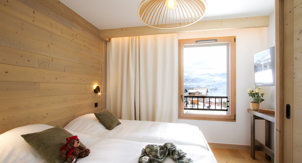 Résidence avec départ et retour ski aux pieds, très ensoleillée avec de jolies prestations, piscine, salle de sport, sauna, hammam, douches sensorielles.