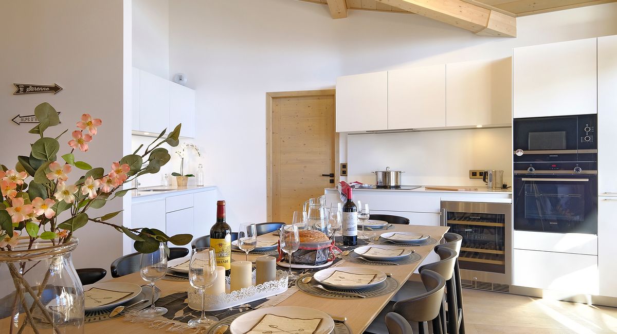 Cet appartement se compose d'un séjour salle à manger avec une grande TV, une cuisine toute équipée avec plaques à induction, four, micro-onde, lave-vaisselle, lave-linge, frigo, 2 chambres avec lit double avec salle de douche et wc, une chambre avec lits superposés.