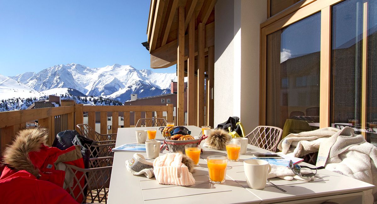 Très bel appartement avec départ et retour ski aux pieds dans une résidence neuve avec piscine intérieure, salle de sports, sauna, hammam, douches sensorielles.