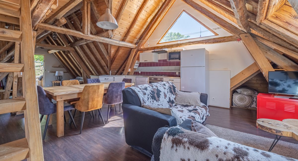 La maison offre un espace de vie ouvert sur terrasse pour les douces soirées d'été et un salon cheminée à feu de bois pour les soirées chaleureuses d'hiver.