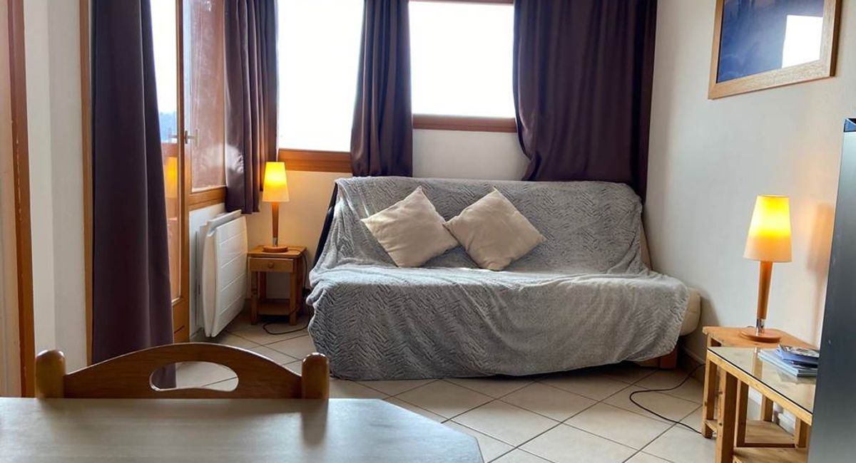 Petit studio de 27m2 avec un coin lits superposés indépendant. Plein sud, belle vue et au coeur de la station de ski. Dans la rue principale de la station.
