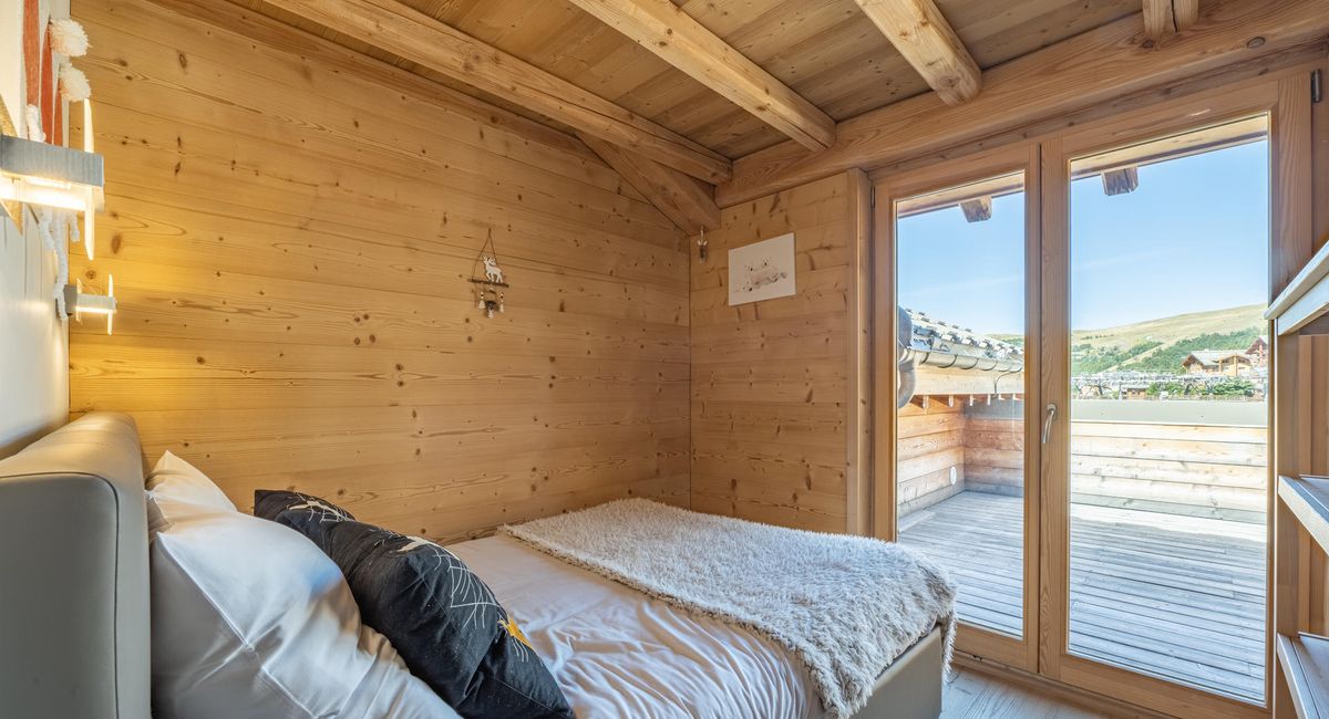Il offre une vue dégagée sur les sommets de l'Oisans et permet un accès direct au domaine skiable en rejoignant le télécentre situé à seulement 200m de l'appartement.